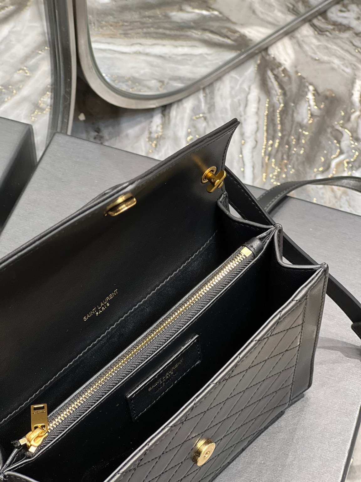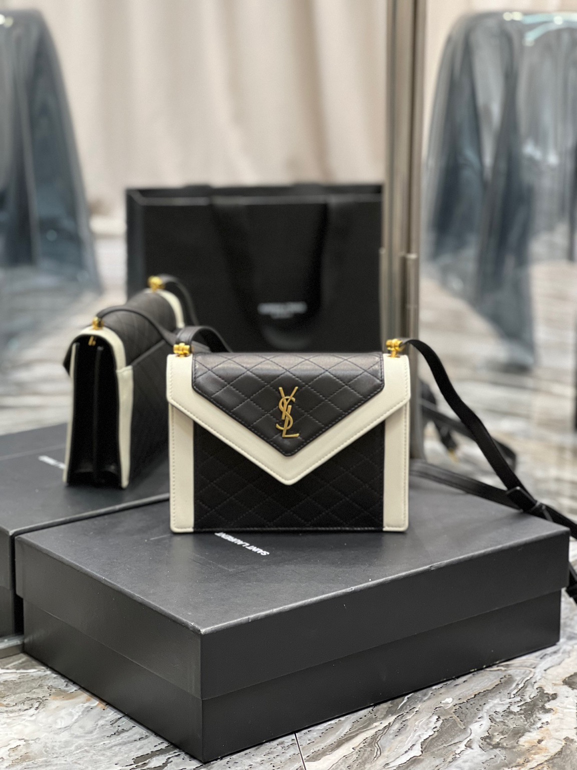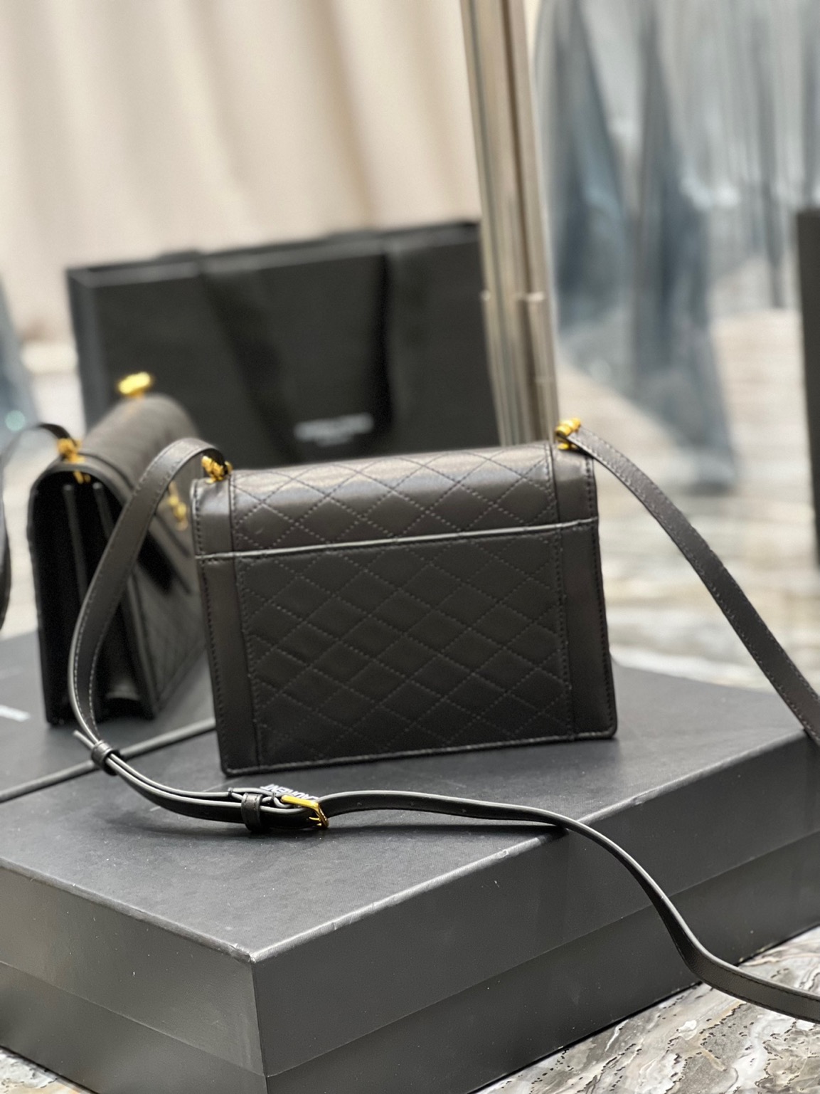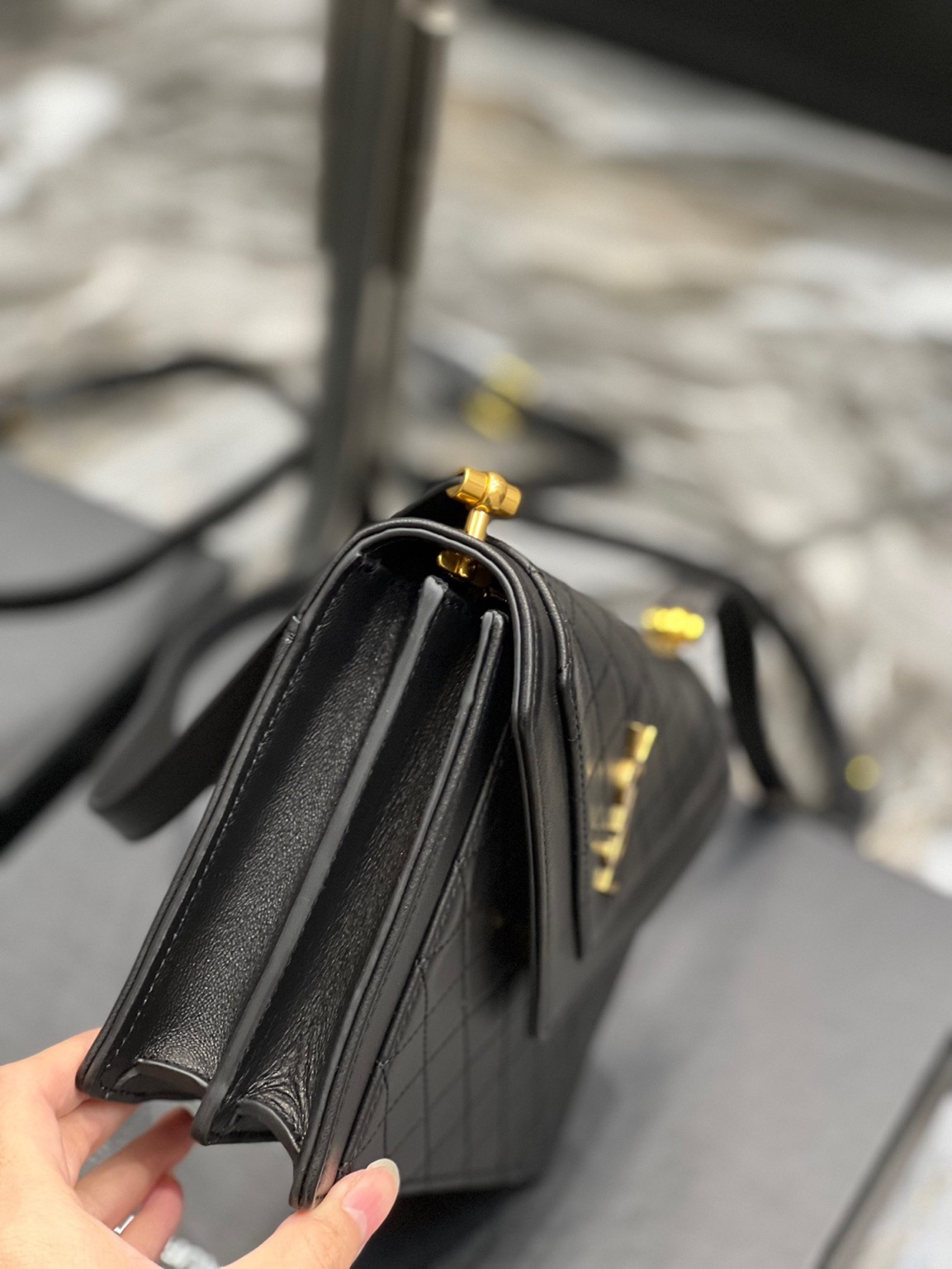 The Gaby Mini Satchel is pure evening elegance. With diamond-quilted leather, iconic YSL hardware, and versatile styling, it’s the ultimate chic accessory for a glamorous night out.