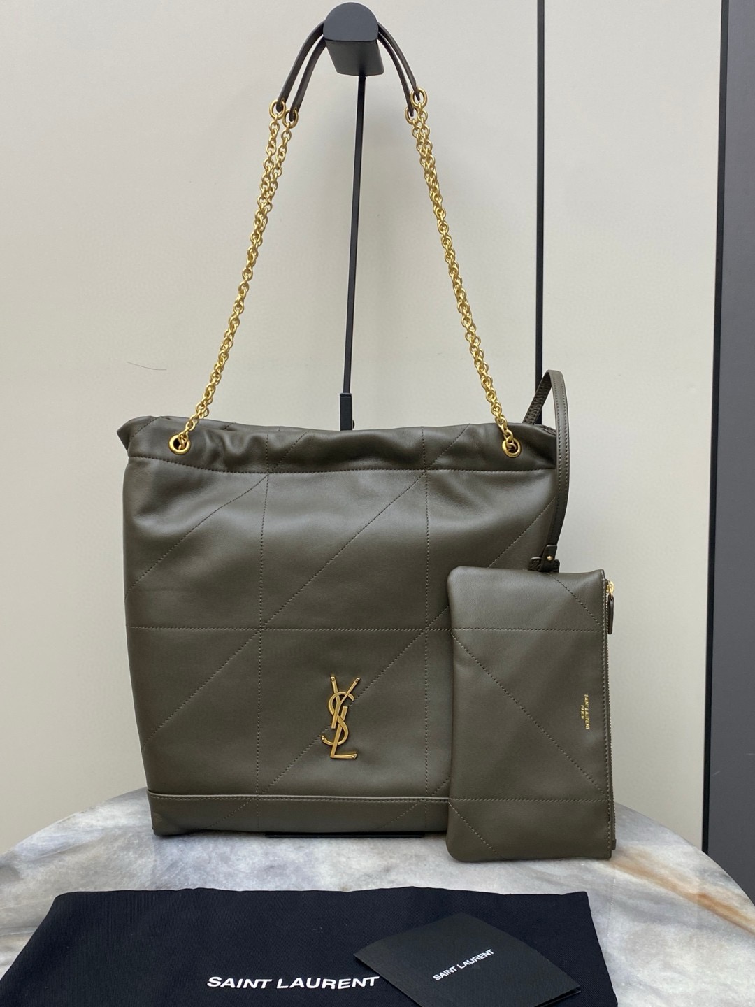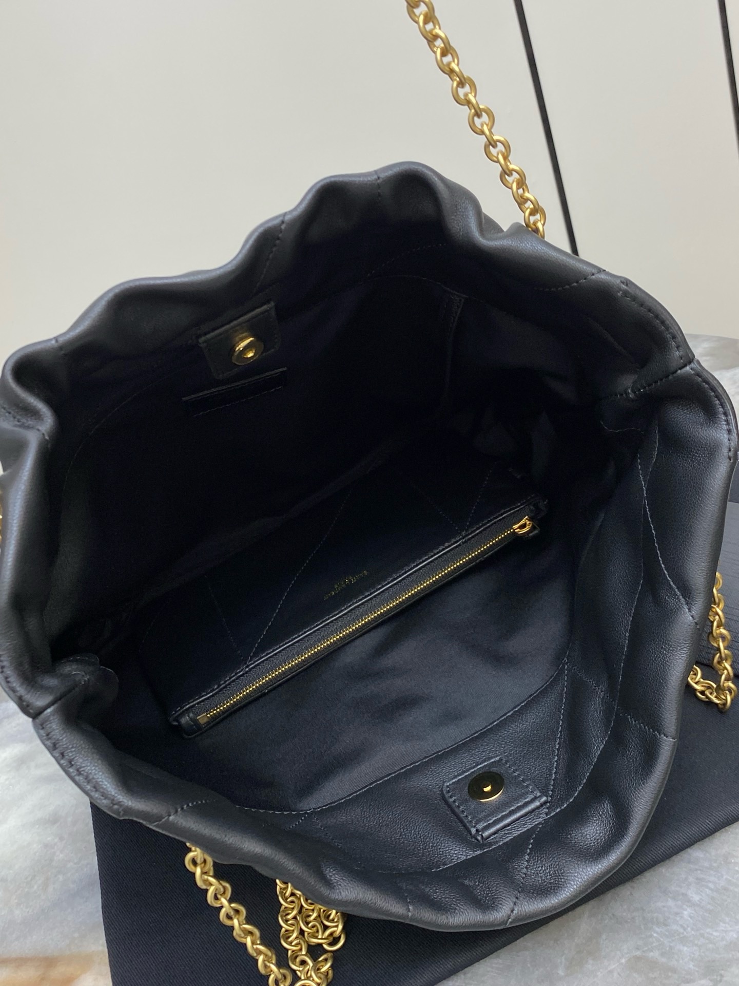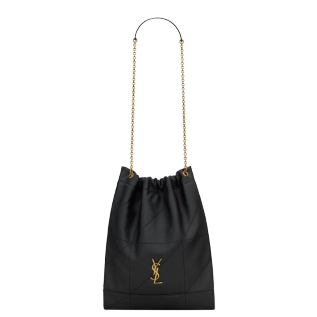 Introducing the pouch version of the ST *AURENT Jamie 4.3, crafted from ultra-soft nappa leather with signature carré rive gauche topstitching. Designed to be both lightweight and spacious, this versatile bag features an adjustable drawstring chain for customizable carry options, along with a removable zip pouch for added convenience. Style meets function in one effortlessly chic accessory!