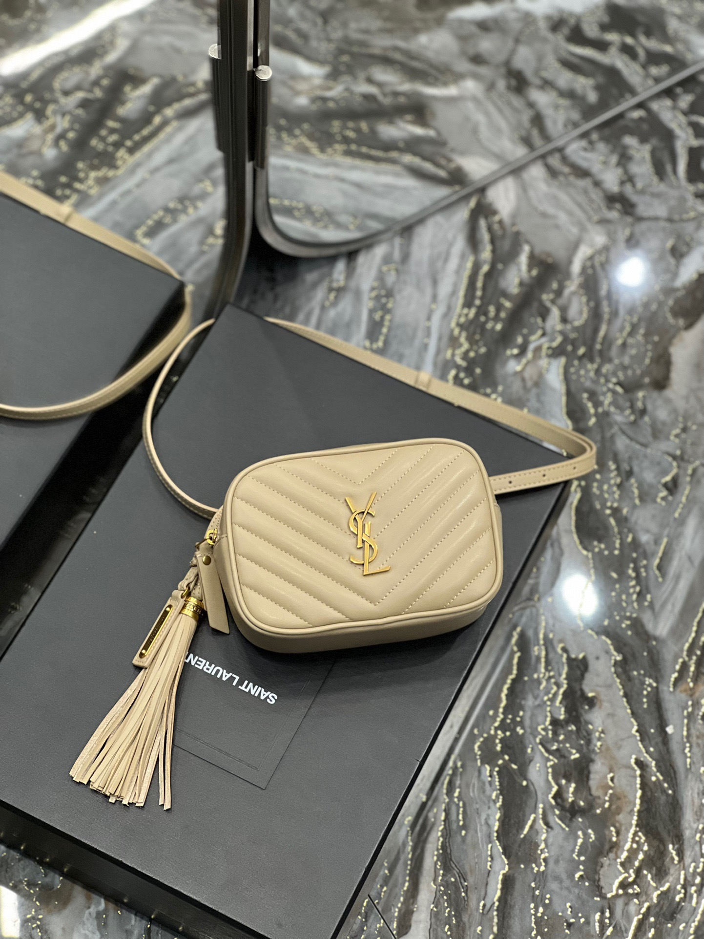 Introducing the Lou Belt Bag – a beautifully designed rectangular bag reminiscent of a camera bag. Its elegantly curved edges exude refinement and are sure to capture your heart. The centerpiece of this bag is the exquisite YSL logo, which is expertly crafted in 3D and comes in your choice of smooth lambskin leather or Chevron Quilting. The smooth leather option exudes a minimalist charm, while the quilted version exudes timeless class. We understand the importance of comfort, which is why the Lou Belt Bag is slightly smaller than its shoulder bag counterpart. But don’t be fooled by its size – this bag can hold plenty of essentials, showcasing its practicality. The bag also features a delicate, feminine leather strap at the back that can be adjusted to fit around your waist. For added excitement and versatility, the strap is adorned with a leather tassel, which can be easily removed if desired.