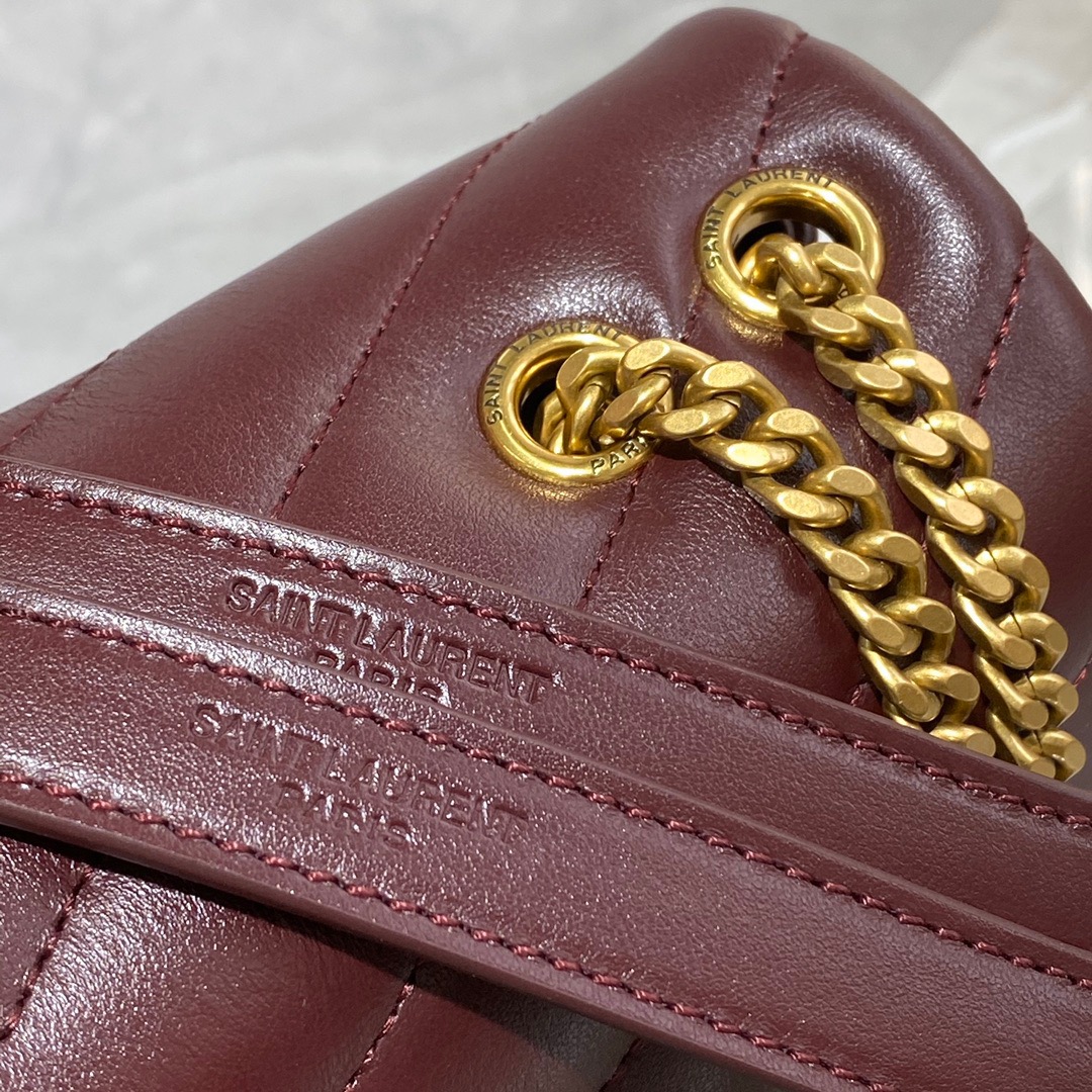 The ST *AURENT Small Loulou Matelassé Bag exudes a timeless femininity with a hint of edgy rock and roll. Its standout feature is the padded quilted leather, adding dimension and volume to the bag. The leather chain handles and iconic metal interlocking YSL initials on the front flap make a bold yet timeless statement of luxury. The versatility of this bag is another noteworthy aspect, as it effortlessly transitions from casual to formal occasions. The moveable chain strap allows for it to be worn as a crossbody bag, further enhancing its adaptability.