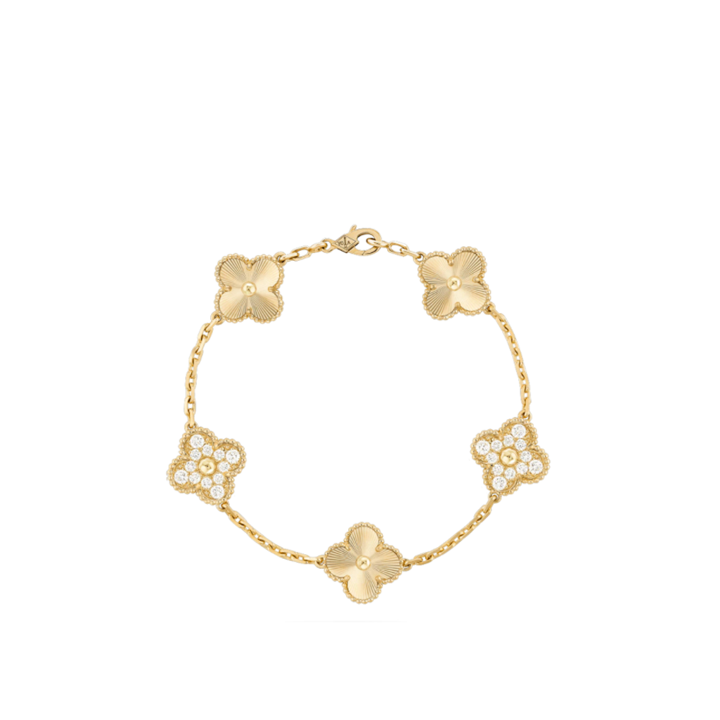 Vintage Alhambra Bracelet. Authentic quality luxury jewelry comes with authenticity card, dust bag and gift bag. A Timeless Tale of Elegance: Discover the Vintage Alhambra Collection, where Luck meets Luxury.