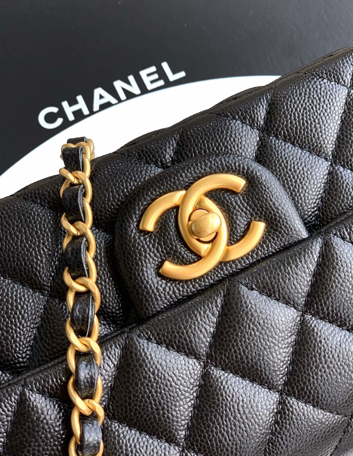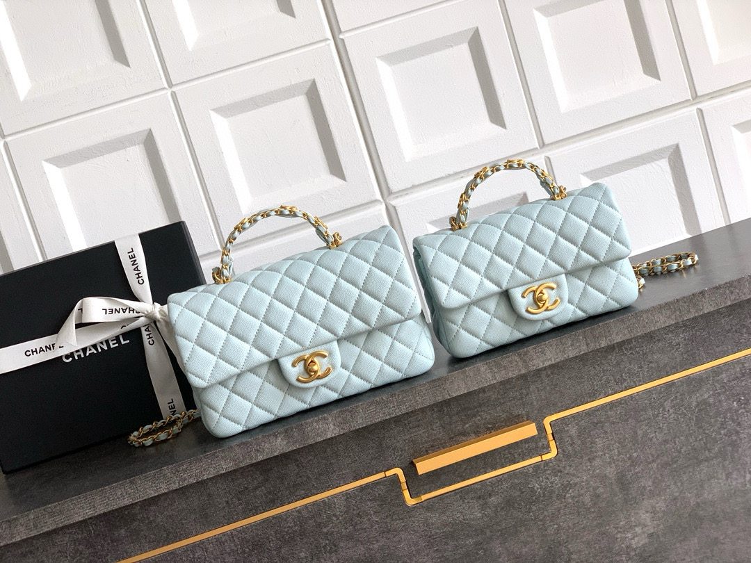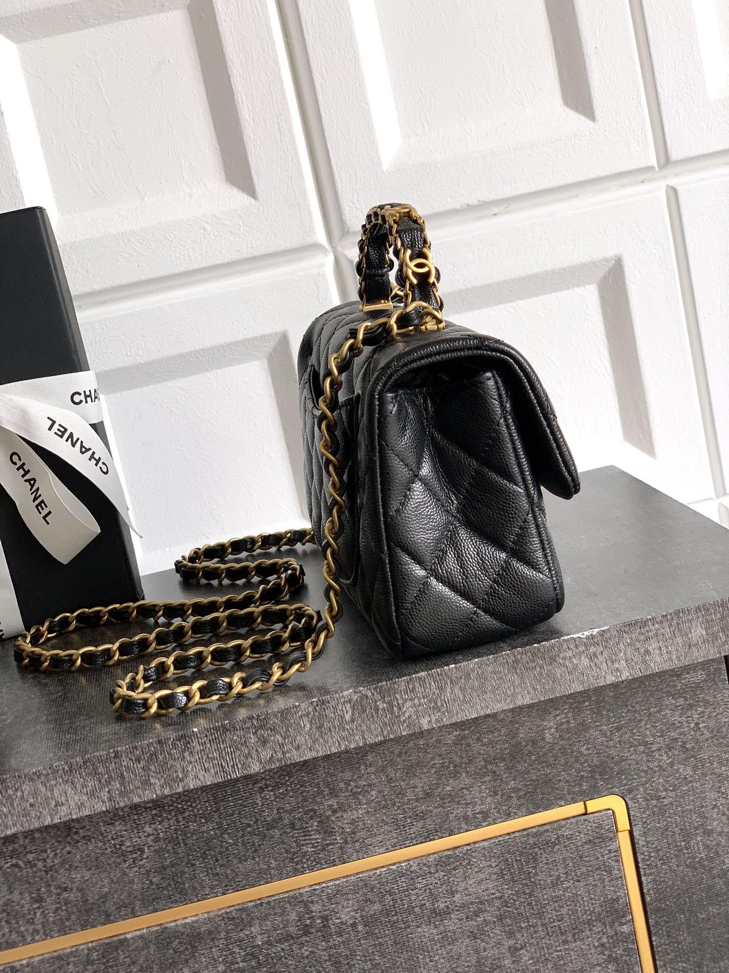 Petite yet powerful, the Caviar Quilted Mini Handy CC Flap embodies timeless sophistication. Crafted from signature caviar leather with classic diamond quilting, this bag exudes refined elegance in every stitch.